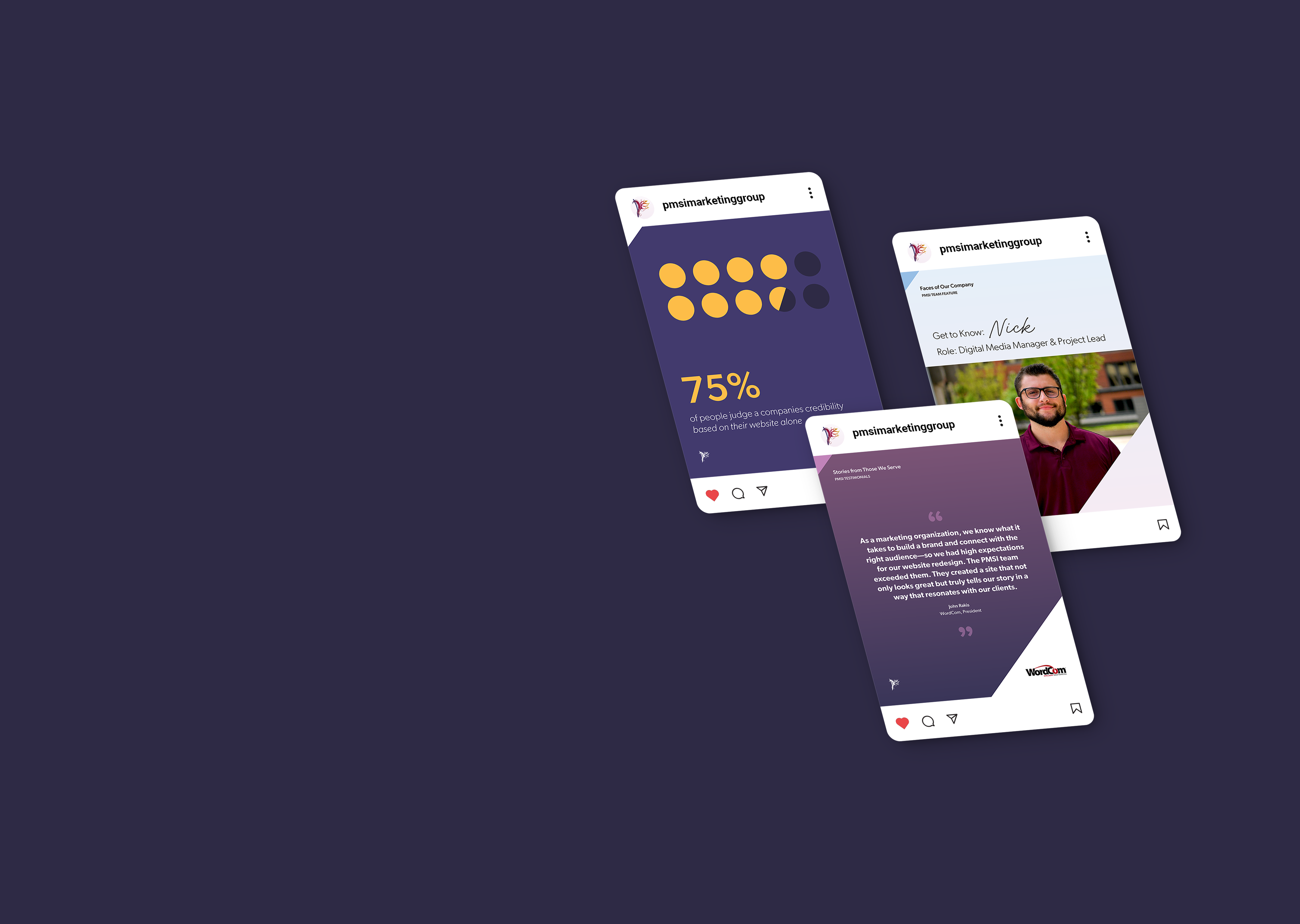 At PMSI Marketing Group, we know that every post tells a story and yours deserves to be heard. With more than 25 years of helping for profit and nonprofits businesses build their brand, we have perfected the balance of strategy, creativity, and collaboration. Think of us as an extension of your team, bringing ideas to life while making the process simple, personal, and impactful.